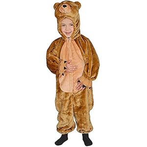Dress Up America Cuddly Little Brown Bear Costume Set comes complete with: luxurious plush jumpsuit with an adorable attached head. Your house will become a bear crossing with this cuddle cute little bear prowling around. This soft and cuddly Teddy Bear Costume is made of polyester. Set packaged in durable snap-sealed poly bag. It is gentle machine washable and flame retardant. It is suitable for children who has 66-71 cm waist and 92-99 cm height. Available in toddler T4 size.